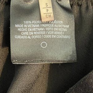 Two tone fabric has a chiffon type stripe that runs the length of the pant leg.