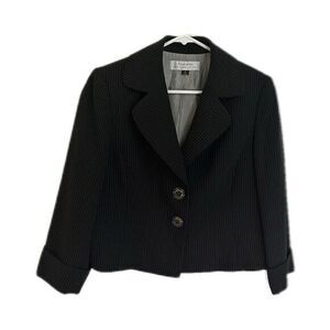 Tahari women's blazer Size 8 Black cropped cuffed pinstripe Gray lined