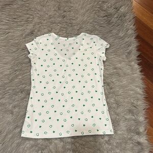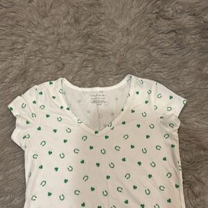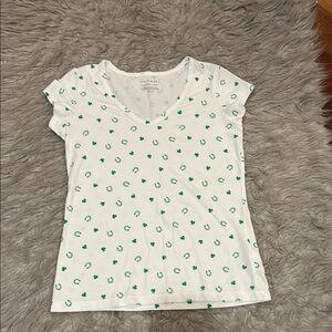Tahari women’s white and green clover and horseshoe Pima cotton soft vneck tshirt size xs