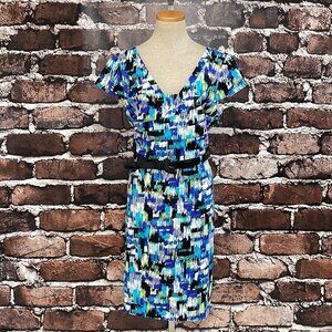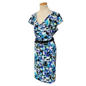 Tahari x Arthur S. Levine Roger Dress NWT Sheath w Belt Turquoise Cobalt Size 16