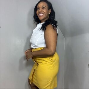 If you're in the mood to inspire smiles, check out this beautiful sunshine yellow skirt. This fun little statement piece can be just the color you need to put some pep in your step for the day. I love this paired with a simple button down top but you can also style it with a denim blazer or oversized retro blazer for a more casual look or a bold pattern top to really make a statement.