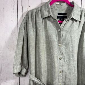 Tahari 100% Linen Beachy Button Front Langenlook Minimalist Belted Shirt Dress