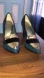Snake print blue suede with pointed toe padded footbed stacked heel 3.5”heel height