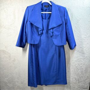 Tahari Arthur Levine 2 Pc Shift Dress Crop Jacket Womens Sz 12 Royal Blue Career