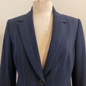 Navy blazer with white stripes. Classic one button closure. Power blazer, be ready to take on anything.