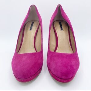 Tahari Brentwood Pink Bright Suede Block Heels Size 8.5
