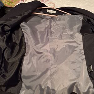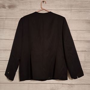 Nice Women's black business jacket. Has one button style closure and has front pockets.