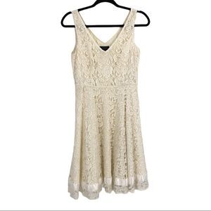 Tahari Dress Bridal Shower Country Lace Ribbon Fit & Flare Full Cream 6P