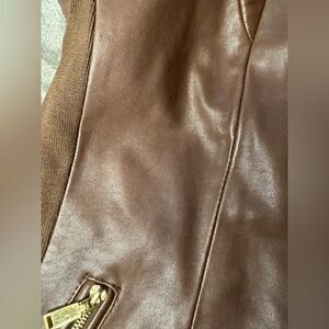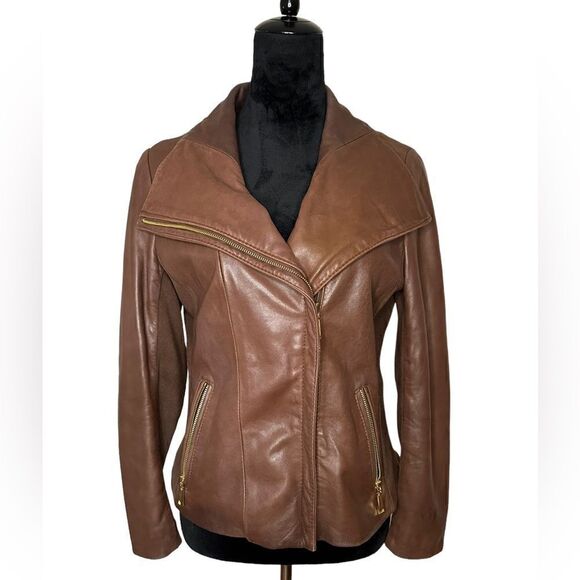 Tahari Lamb Leather Brown Moto Jacket sz M