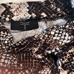Tahari size medium half sleeve snakeskin print top. Button accents have some discoloration but overall, top is still in good condition.