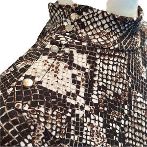 Tahari Mock Neck Snakeskin Blouse 1/2 Sleeve Size Medium