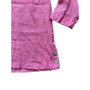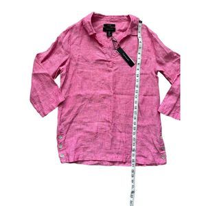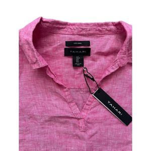 Tahari NWT Barbie Pink 100% Linen V-Neck Chambray Tunic Blouse Top Size Small