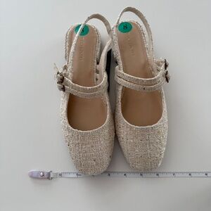 Tahari-NWT- Password-Tweed-Mary Jane-Sling Back-Buckle-Cream-Gold-Classic-Size 8