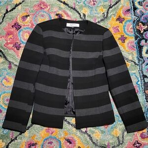 Tahari Ponte Striped Collarless Blazer Jacket Grey Women's 2