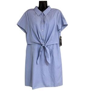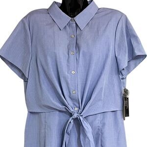 Tahari Short Sleeve Dead Stock Jamie-B Dress Blue Button Up Top Zip Back Dress S