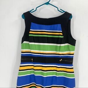 Tahari Sleeveless Multicolor striped Sheath Dress Size 16