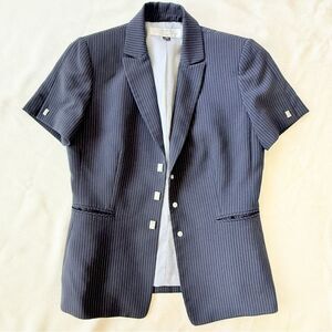 Tahari Womens Petite Jacket Pants Set Striped Office Casual Short Sleeve 4P