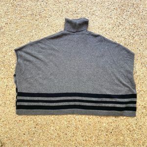 Tahari Wool & Yak Hair Striped Gray Poncho Cowl Neck Poncho Size S