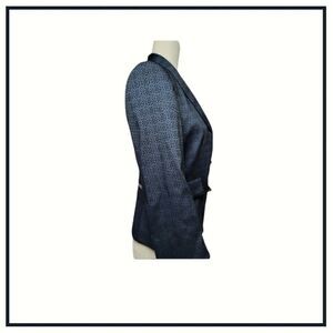 Tahari by Arthur S. Levine. Blue blazer size 8 petite. In blue with a black pattern comes with black belt. Sleeves have a small slit on the sides.
