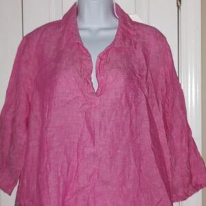 Tahari pink 100% linen tunic top 3/4 length sleeve Sz 1X