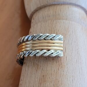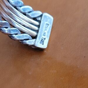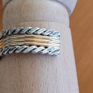 This Tahe Navajo cuff bracelet is a stunning piece of jewelry that combines sterling silver and gold filled materials. The bracelet features intricate designs that are perfect for anyone looking for a unique piece of jewelry. The 6 inch length makes it a great fit for unisex adults.