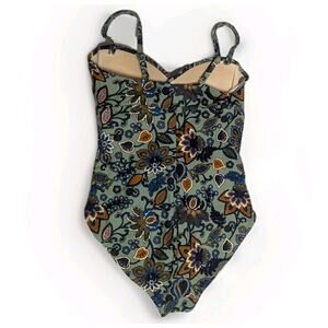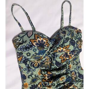 Tahiti Swimsuit Blue Green Paisley Floral One Piece Ruched Tummy Control Size M