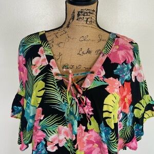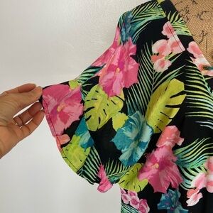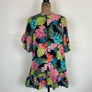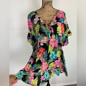 Tahiti Women's Floral Mini Dress Beach Coverup Size M Ruffle Sleeve Ruffle Hem