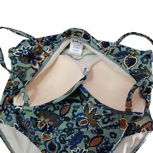 Tahiti boho floral one piece swimsuit floral blue yellow tan size Large 12-14