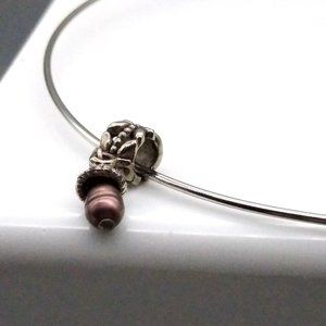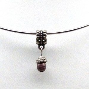 Tahitian Pearl Pendant on Silver Tone Formed Collar Necklace, Vintage Elegant Burgundy on Sterling Silver Bale