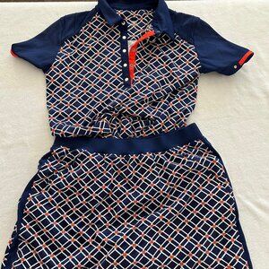 Tail 2 Piece Skort Set Vibrant Blue/Orange Geometric Golf Top and Bottom SZM