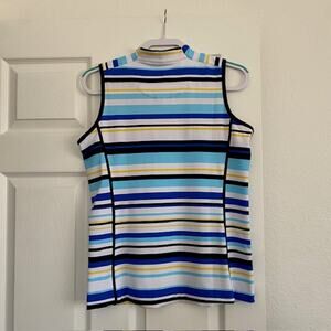 Tail Activewear 1/4 Zip Polo Shirt Sleeveless Blue Striped Women's Medium