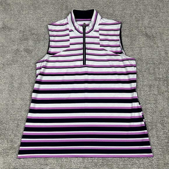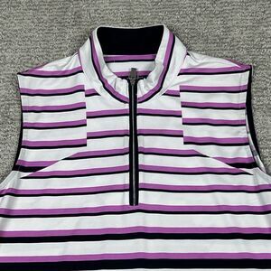 Tail Activewear Top Womens Large Golf Tennis Pickleball Striped Purple Navy & White