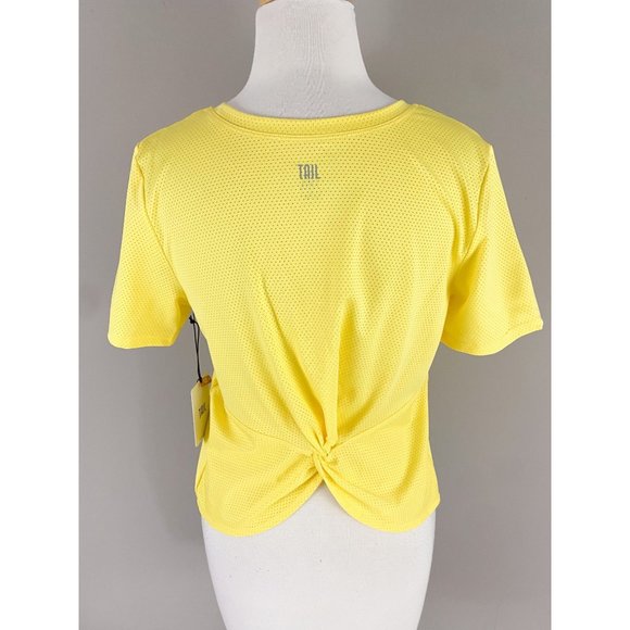 Tail Activewear Yellow Twist Back Hem Short Sleeve Crop Top Aspen Large NEW