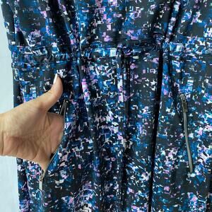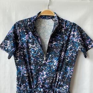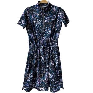 Tail Drawstring Waist Athletic Dress S Blue Black Geo Print 1/4 Zip Activewear