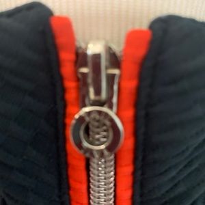 Tail Ladies Navy Nylon Stretch Sports Vest. Size Medium. Colors are Navy with Red and White Trim. 92% Nylon 8% Lycra. Fully lined. Real sharp looking and the nylon is stretching for comfort. Has 2 side slit pockets. Will be great for those days you need a little something extra for warmth. Comes from a Pet/Smoke free home. Cleaning out.