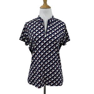 Tail Quarter Zip Mock Neck Golf Polo Womens S Small Multi Geo Print Short Sleeve