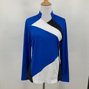 Tail Top Womens S Small Blue Black Mesh Panel Mock Golf Performance Colorblock