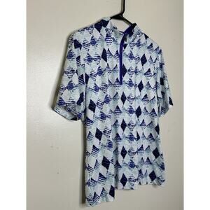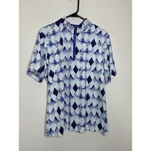 Tail Women’s XL Geometric Polo Style Zip Close Top Purple Diamonds Short Sleeve