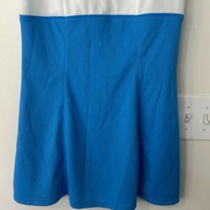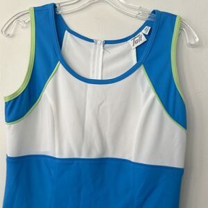 Blue & white athletic dress. Great for tennis or golf. Zips in back. Material tag is missing. In VGUC.