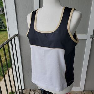 Tail. Tech. Black, White and Gold. Square Neck. Sleeveless. Active Tank Top. Size Large. Golf. Tennis. Retro Activewear.