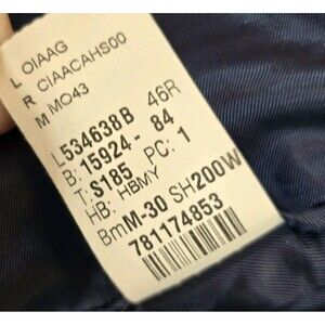 Visible Tags/Markings: REDA label; "TAILORED" interior patch; "Made in Canada" tag; RN 69456; CA 01129