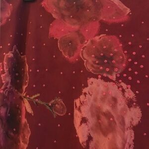 The skirt is very very cute it’s got a beautiful floral pattern, Like a ruby burgundy color with little hint of green, the Waist is elastic, is fully lined.