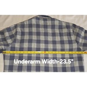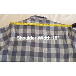 Previously Owned Checkered Blue Shacket Shirt by Tailor Vintage. Lined with Sherpa. Has 4 pockets. Long sleeves, Button Down.
