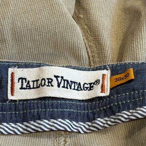 Tailor Vintage Corduroy Pants Canaan Slim Fit Comfort Stretch Waist Size 38 Tan Stone Beige Classic Preppy Academia Ivy League Business Casual Fridays Weekend