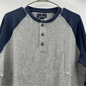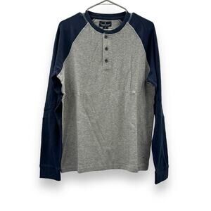 Tailor Vintage Gray & Navy Blue 3-Button Long Sleeve Henley Tee Shirt Sz M NEW