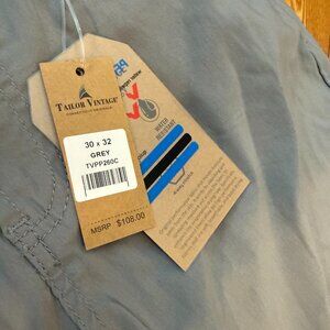Tailor Vintage Mens 30x32 Performance Tech 4 Way Stretch Pants Grey Slim Fit NWT