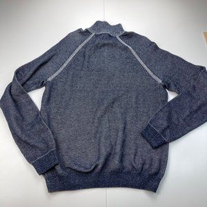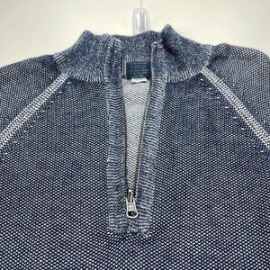 Tailor Vintage Navy Birdseye Quarter Zip Stand Collar Sweater Size Medium