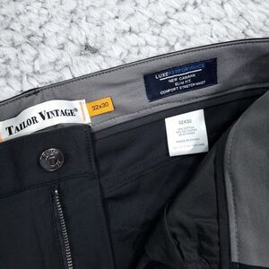Men's Tailor Vintage New Canaan Slim Fit Luxe Performance Tech Pants in black. Quick dry easy care stretch chino pants. New with tags, has a small pinhole on the front from a store security tag as shown in photo. Men's size 32 x 30, real measurements shown in photos with pants laid flat: