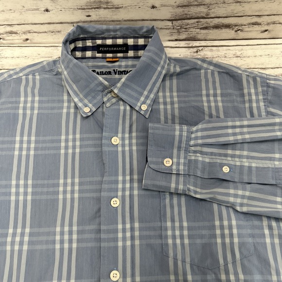 Tailor Vintage Performance Button Down Shirt Men's Large Blue Palid Long Sleeve