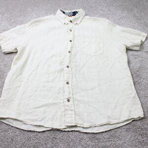 Tailor Vintage Shirt Mens Large Beige 100% Linen Pure Tec Cool S/S Button Down